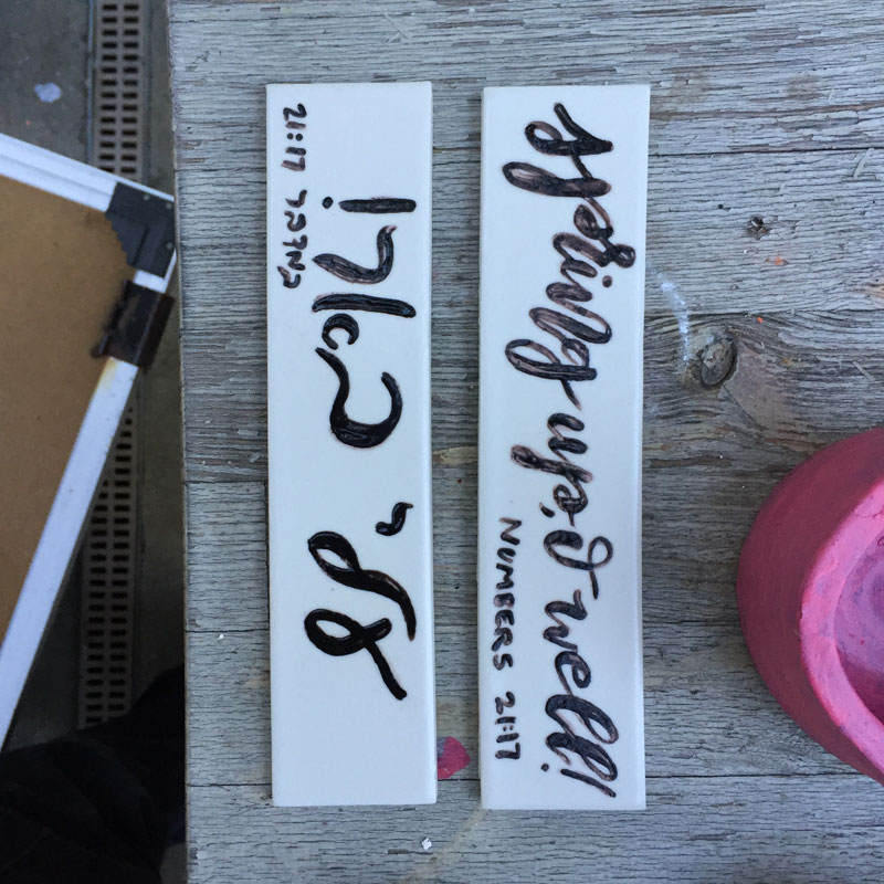 One of the other Hagigah artists – Sarah Edelstein – agreed to hand-letter two tiles for us with our text source from the book of Numbers.